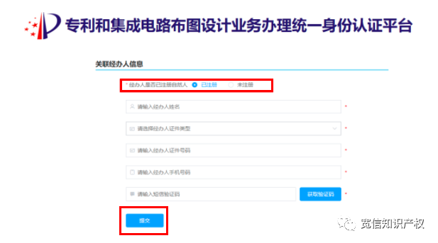 最上方經(jīng)辦人是否已注冊自然人:如經(jīng)辦人有個人賬號,選擇已注冊輸入注冊信息點擊提交即可。