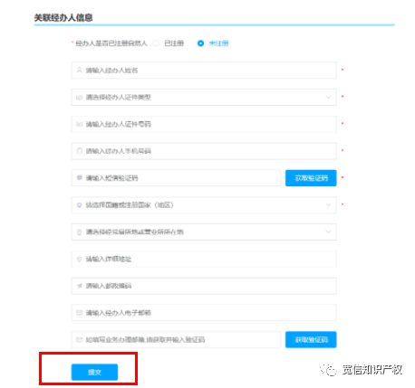 如經(jīng)辦人沒有個人賬號,選擇未注冊輸入對應信息點擊提交即可注冊成功。