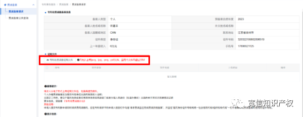 上傳專利費減證明,個人上傳身份證及上年度收入證明即可(如個人未滿18周歲或為在校學生收入證明可替換為在校證明,在校證明及收入證明可)點擊提交,等待專利代辦處審核通過即可。